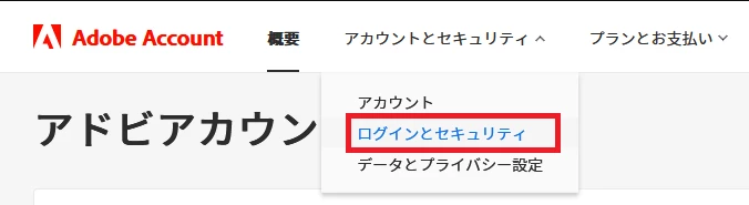 3. 上部[アカウントとセキュリティ]>ログインとセキュリティの順でクリック