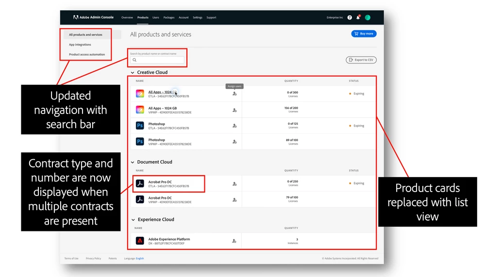 アドビは、組織の製品およびサービスの管理者向けに、「製品」タブで承認された新しいエクスペリエンスを導入しました。