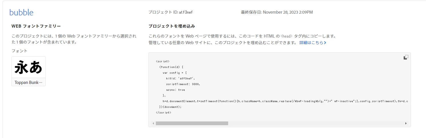 AdobeFontの@importを知りたいのですが、サポート記事を見ながらしても、画像のようなものが表示されてしまいURLを取得することができません。解決方法を教えてください
