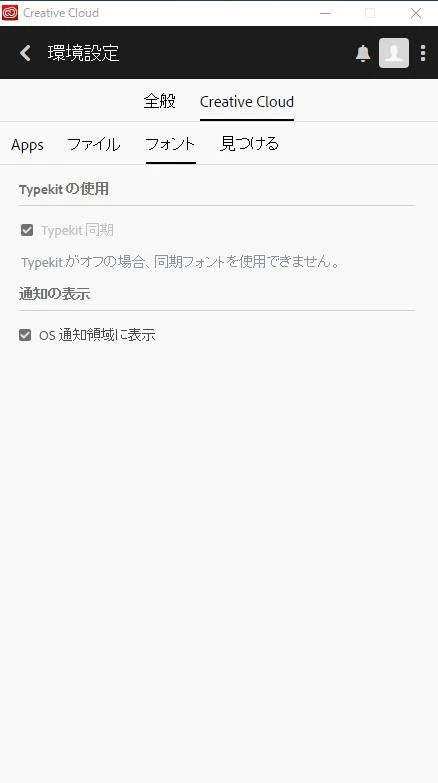 環境設定のTypekitの使用チェックボックスは灰色になってチェックのオンオフが出来ない状態です。