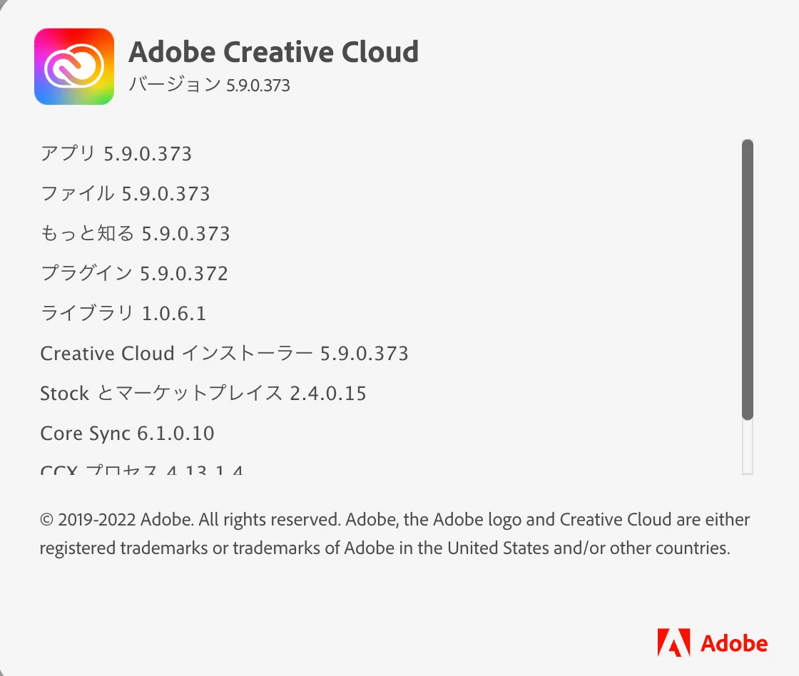 今Adobecloudのバージョンはこんな感じなのですが、