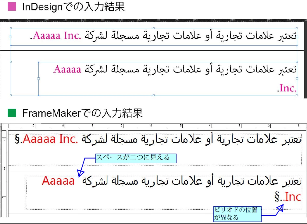 ・FrameMakerではピリオドの位置が変わってしまっています。 IDでは「.Inc.」FMでは「..Inc」