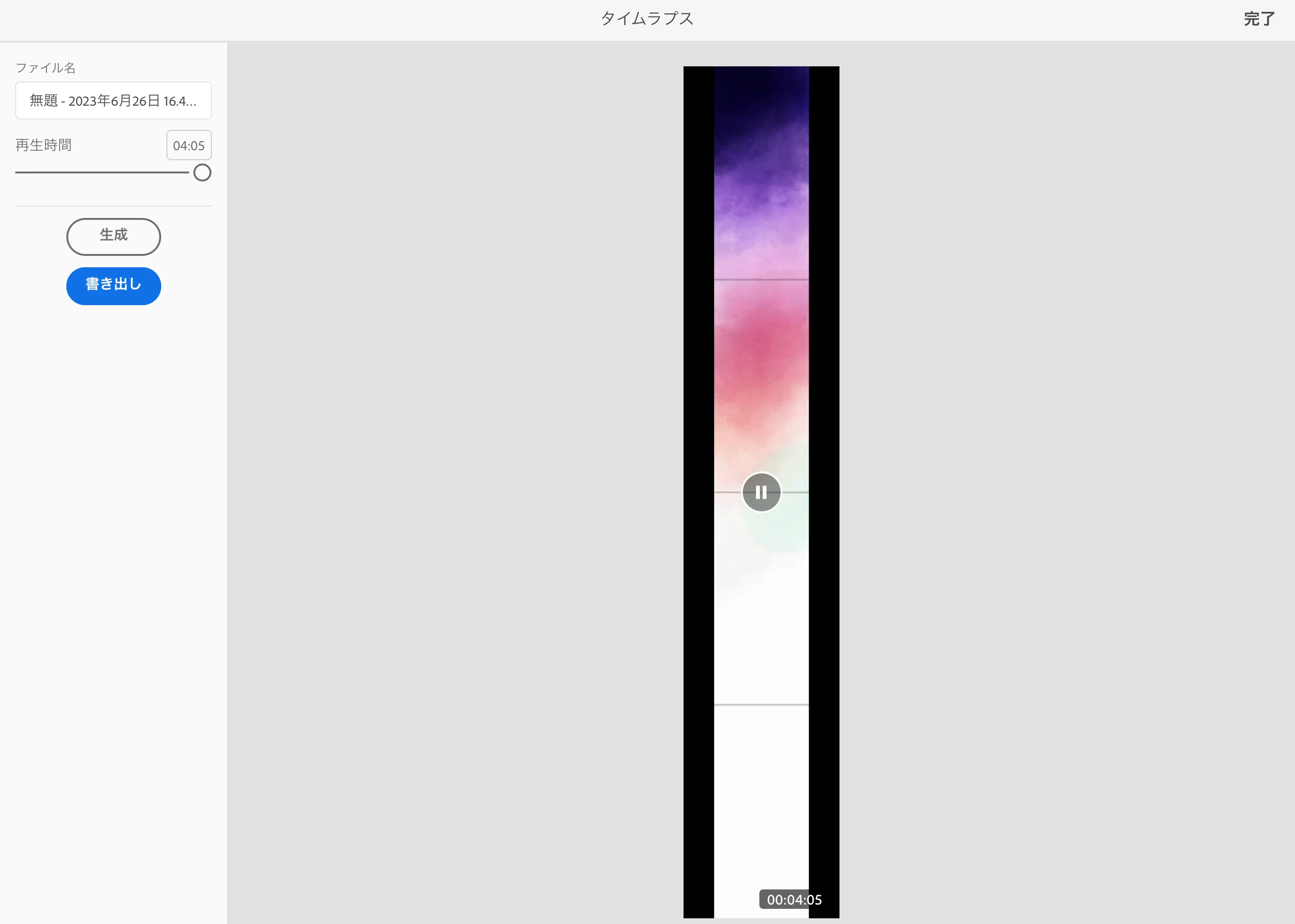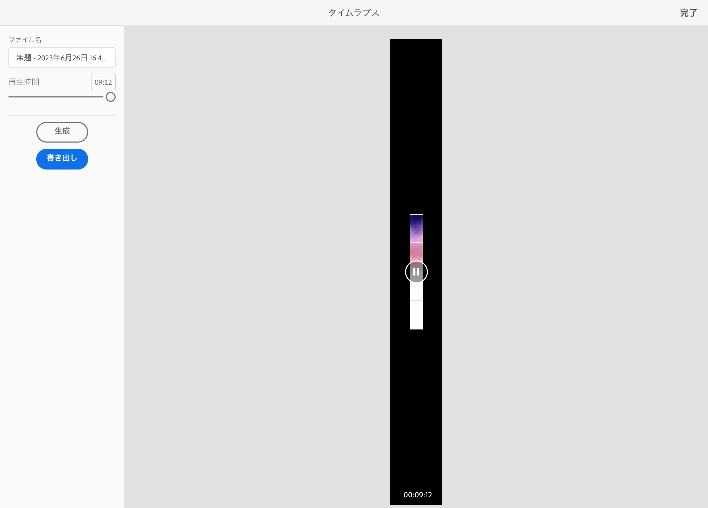 今朝タイムラプスを書き出した時は、このようになっていました。