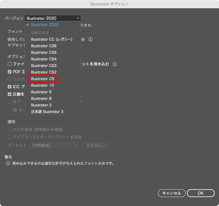 illustrator CC(2024)を使用しているのですが取引先からCS1にバージョンを落としてデータを送ってほしいと言われました。