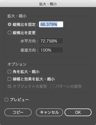 縦横比変倍縮小(この場合は水平方向のみ72.758%)したとします。