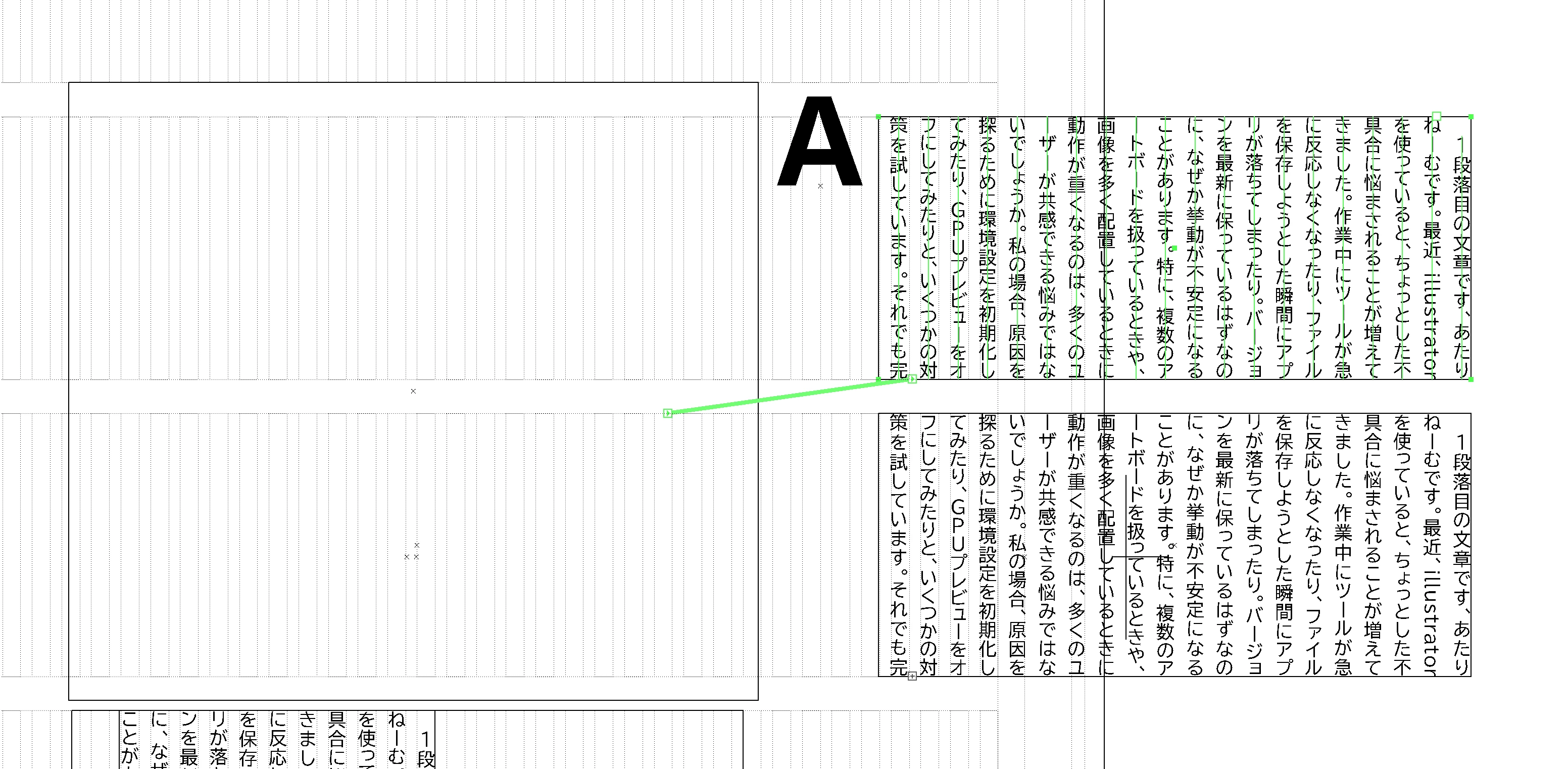 CS6保存する前は、1段目〜2段目と繋がるテキストが流れておりました。