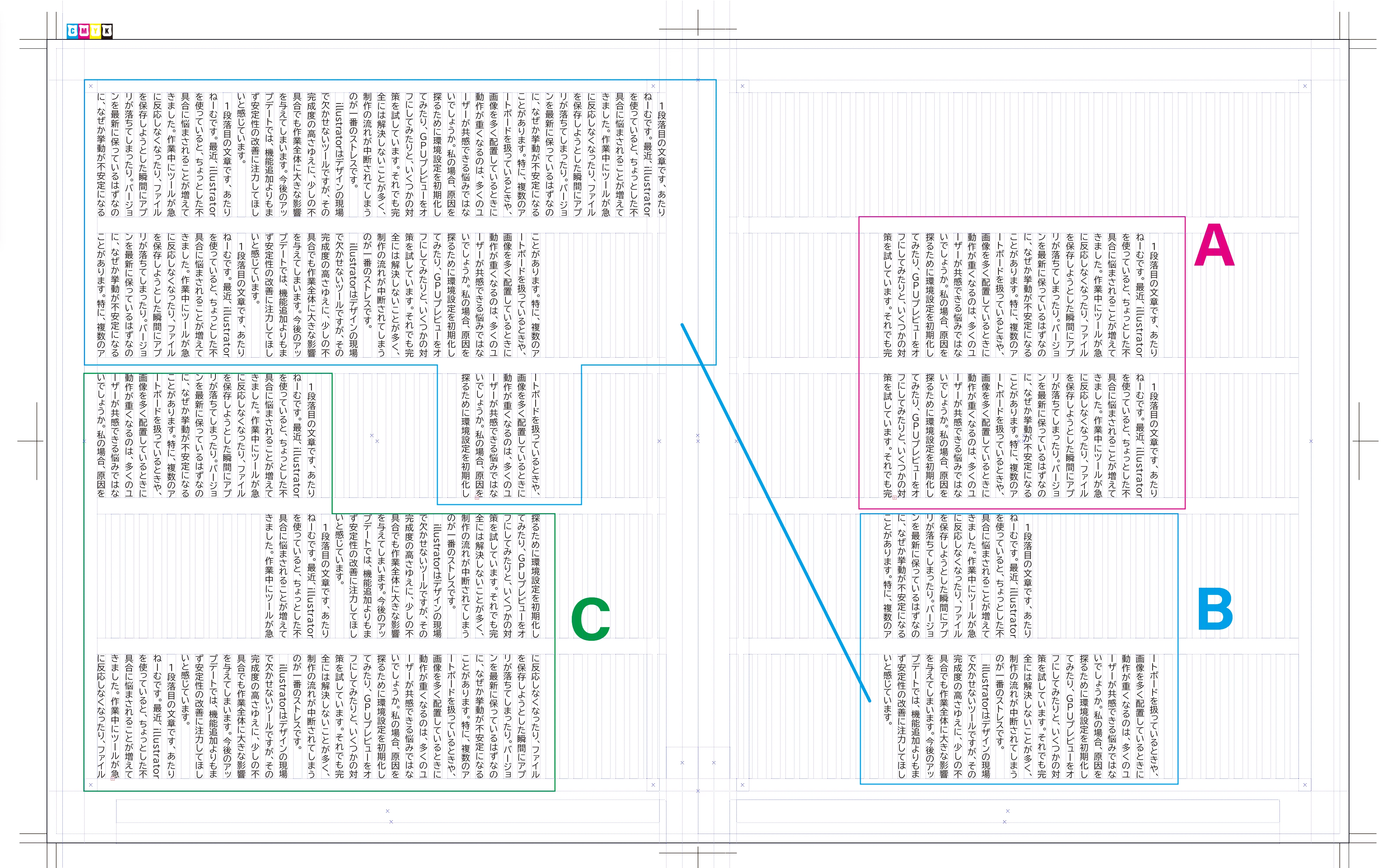 不具合が出たのは、段組グループA、Cの2箇所です。