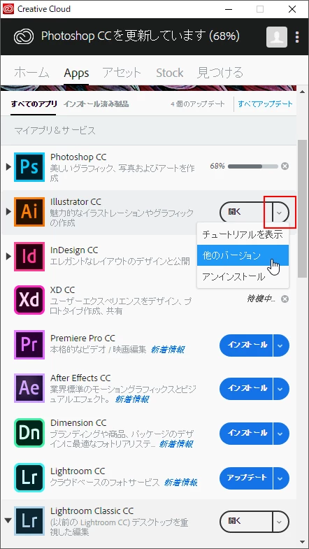 動作対応するCC 2017/CC 2015.xは下記のようにクリックしてインストールを行います。