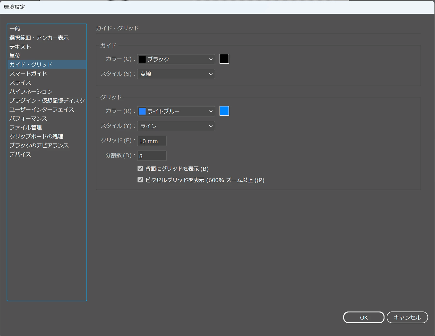 Win版Illustratorで曲線のガイドが実線のような表示になる