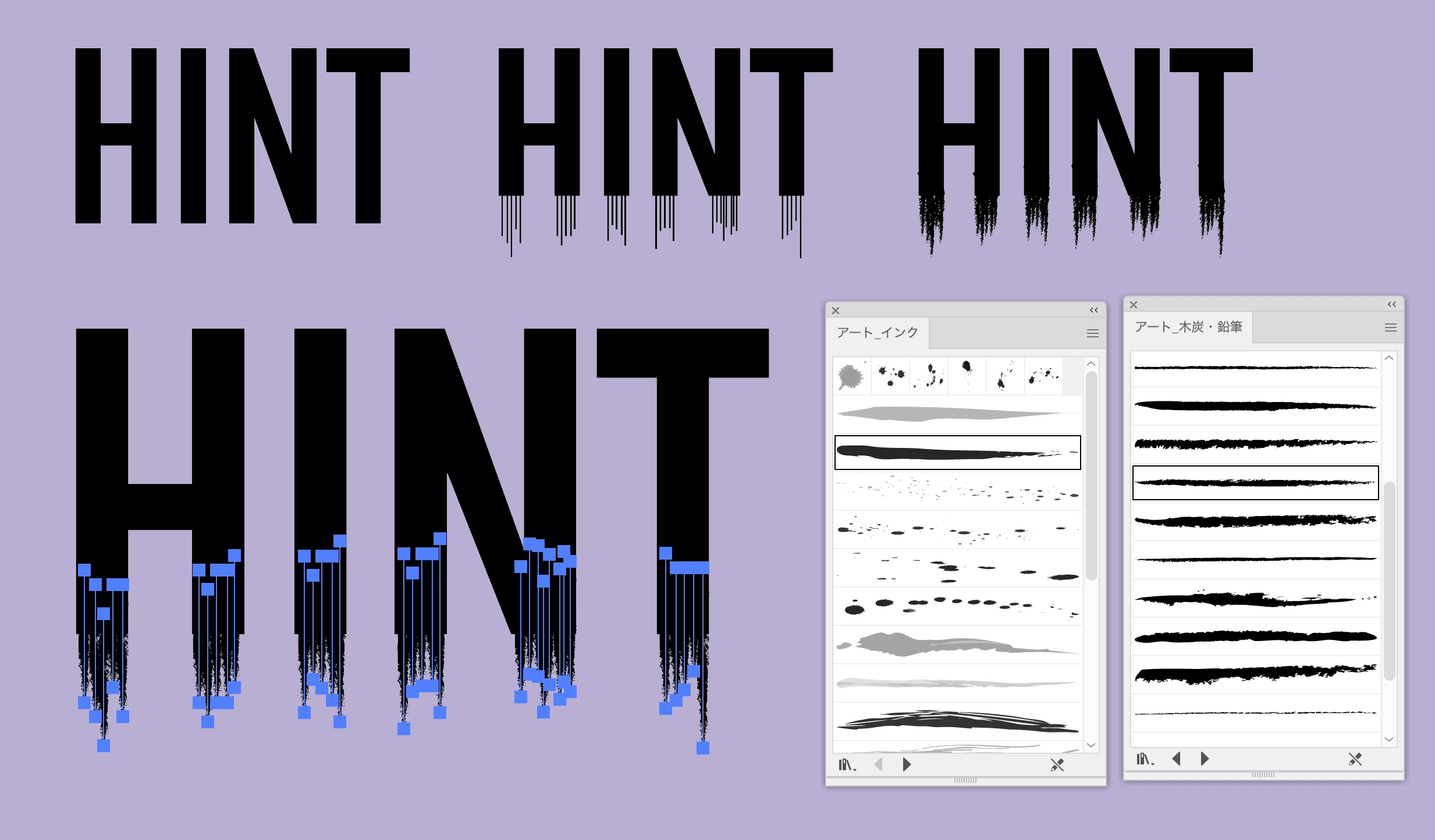 こちらは一例ですが、文字の下に線をつけてブラシライブラリからインクや木炭・鉛筆などのブラシを選ぶと線の先がかすれたような表現ができます。