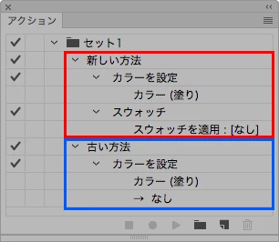 ↑ 新しい方法で書かれた「塗りなし」を行うアクションと、古い方法で書かれた「塗りなし」の比較です。