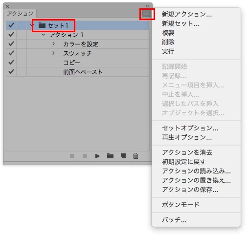 個々のアクションはフォルダの形をしたアクションセットに登録されています。