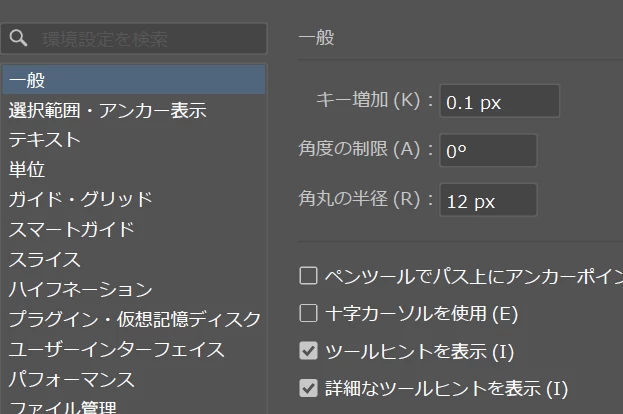 自分の環境では「単位 / 一般」を「ミリメートル」にして「キー増加」は「0.3」にしています。