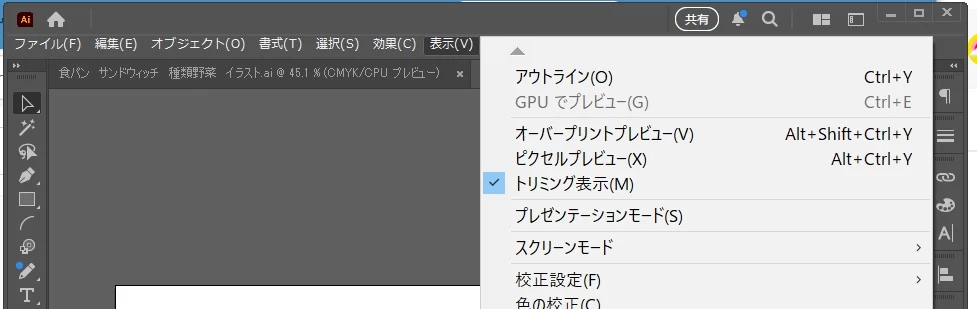 原因:メニューバー 表示→トリミング表示→☑ で解決