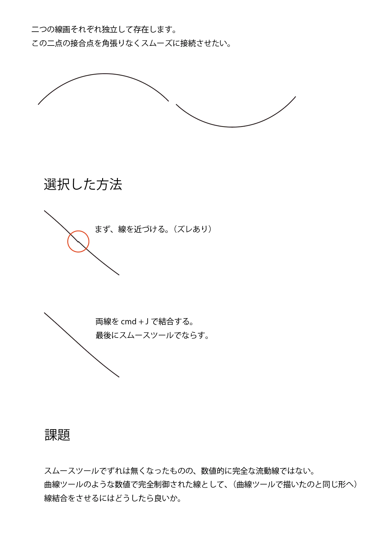 パスの結合について、異なるパス同士を違和感なく結合させたいと思います。