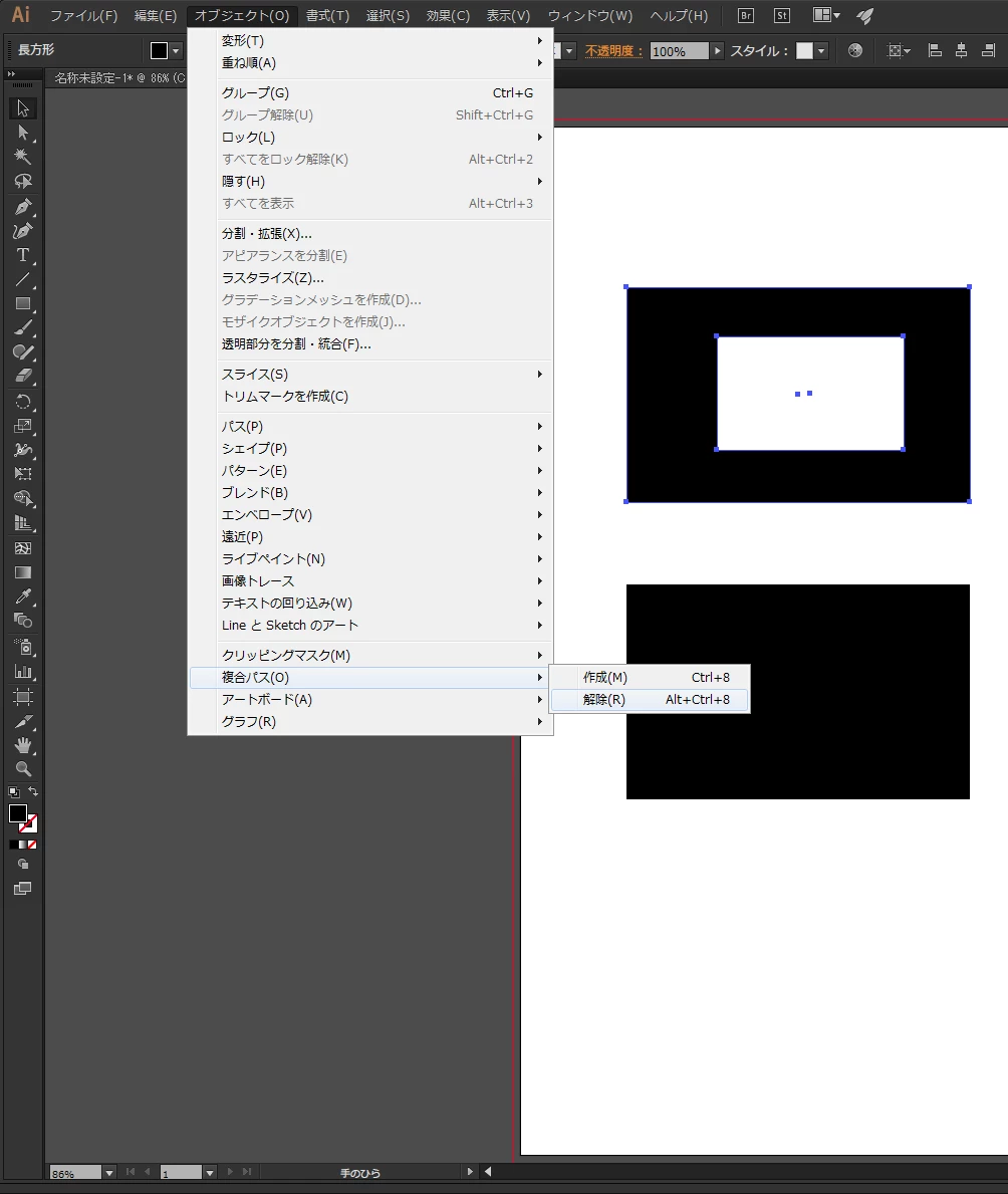 Illustratorで開いている事を前提としてお話しますが、「複合パス」になっています。