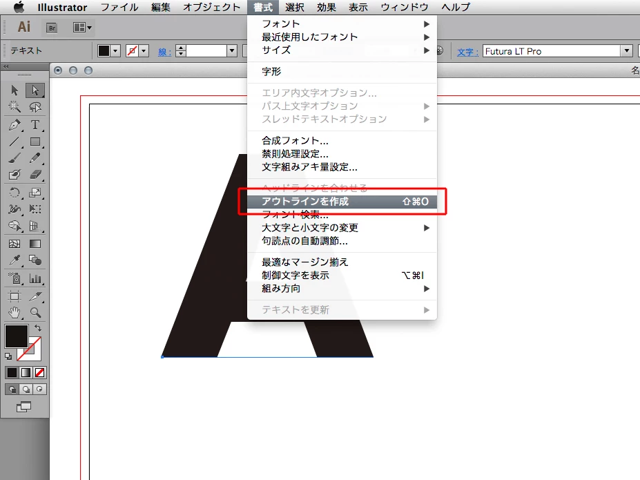 2.テキストオブジェクトを選択して「書式」メニュー→「アウトラインを作成」を実行します