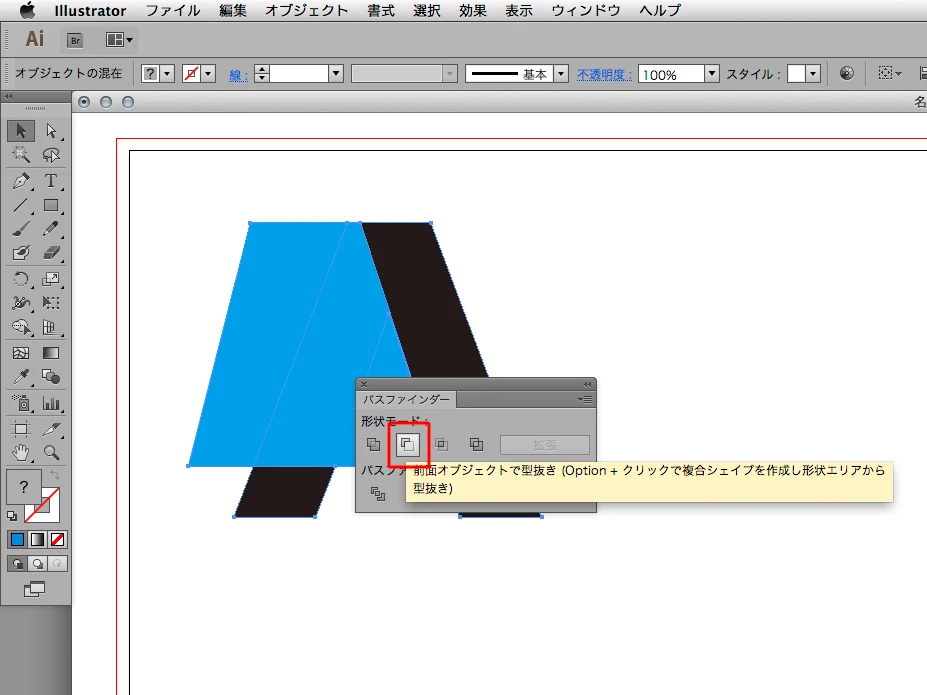 4.「パスファインダー」パネルの「前面オブジェクトで型抜き」を実行します