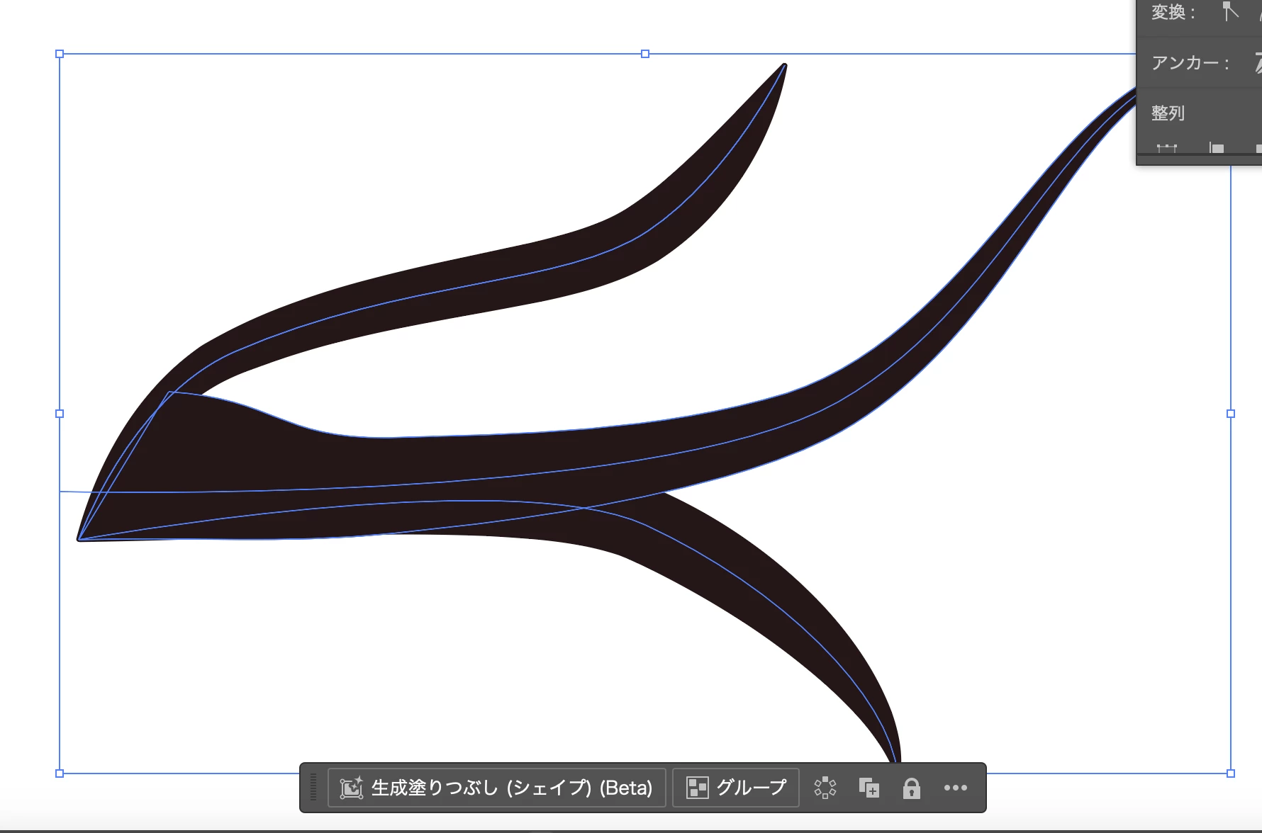 私の場合は、しなやかな湾曲したベジェ曲線を描く場合アンカーポイントを少なめにするように心がけています。