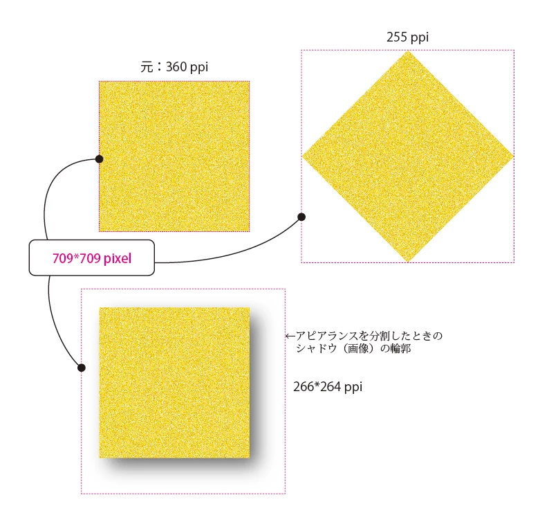 配置画像にドロップシャドウをつけると、リンクパネルのPPIが変わる