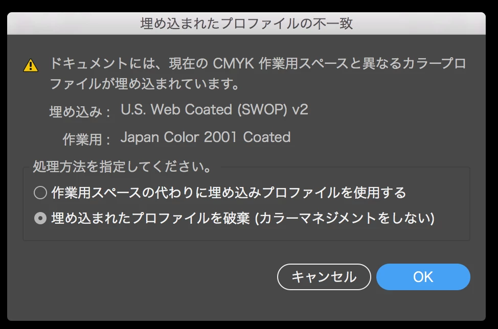特にこのデータの場合はWEB用のプロファイルが埋め込まれているので、