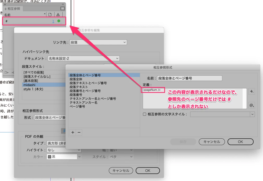 Indesignの相互参照の名前が全て#になる件