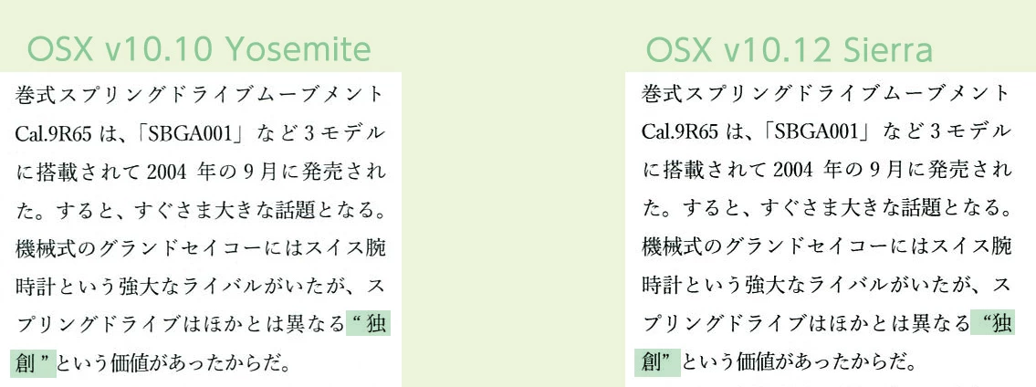 MacOSのヴァージョンの違いにより、字間に違いがでる。