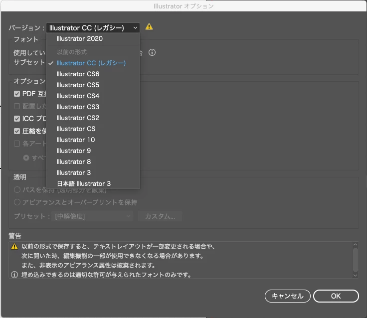 昨年まで出来ていたのに、イラストレータのファイル(複数あります)によっては配置のときに