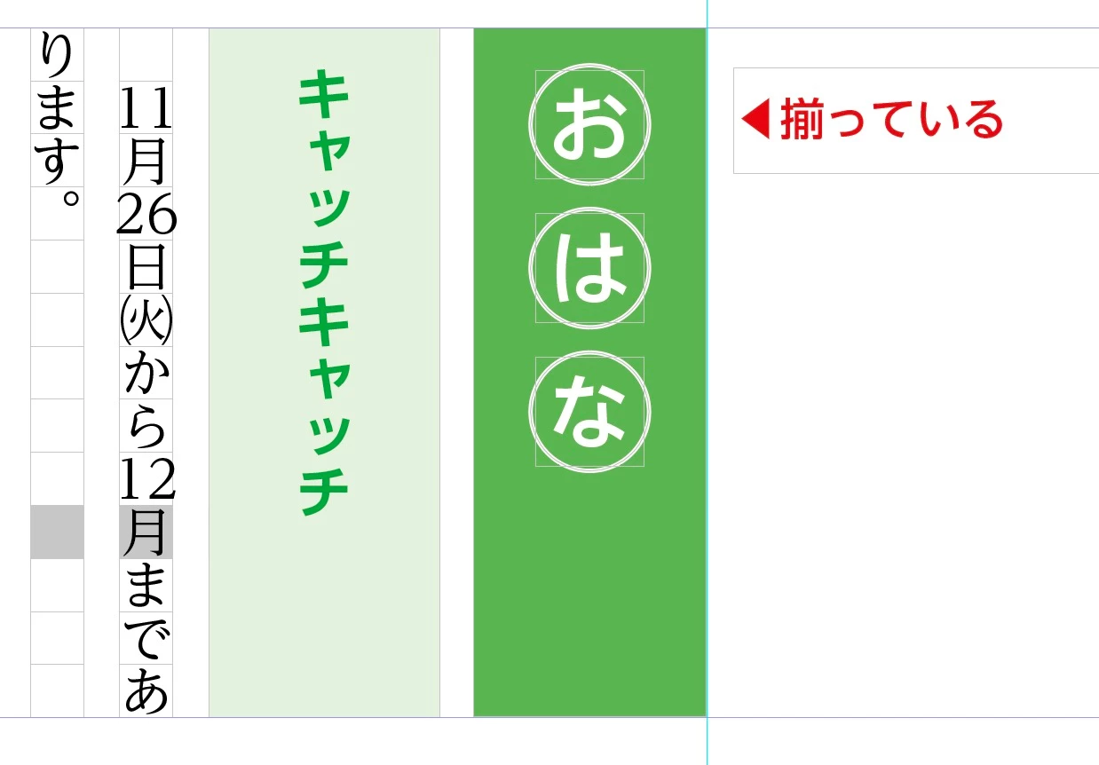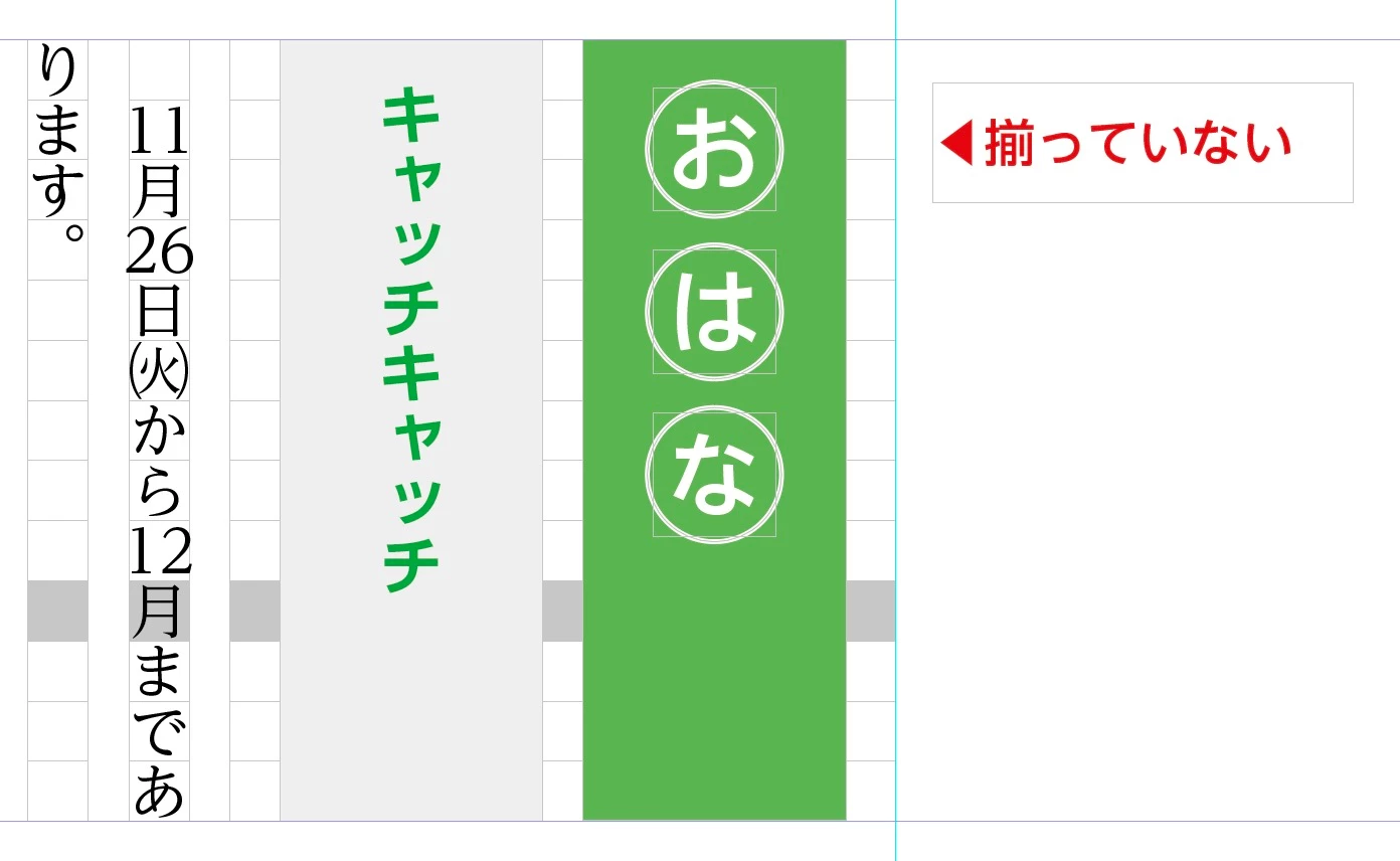 同じテキスト内の別の場所に配置するとグリッドに揃う時もあります。