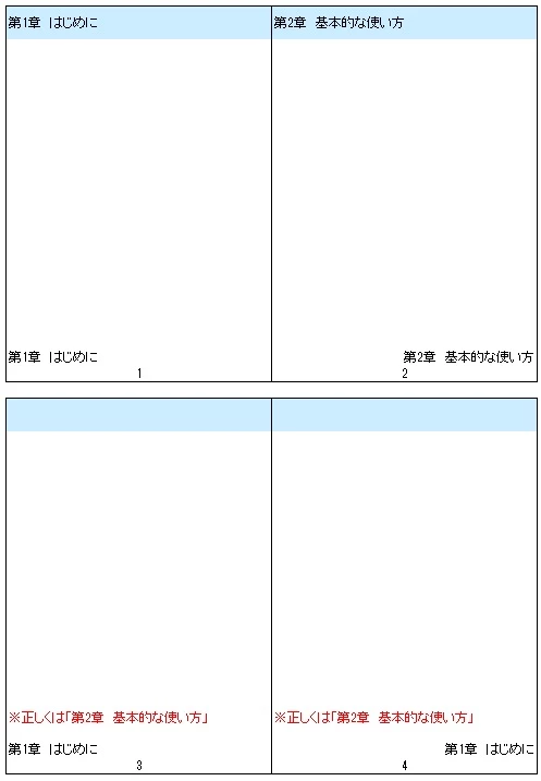 このとき、3ページ目と4ページ目には2ページ目の見出しをフッターに表示させたいのですが、