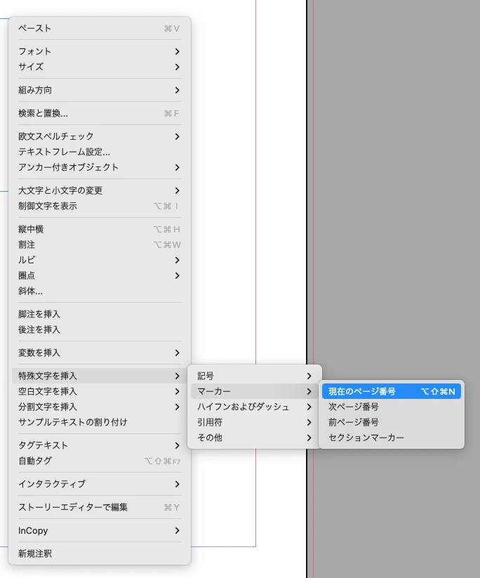 入力の仕方は、右クリックして出てきたメニューから「自動ページ番号」を選ぶだけです。