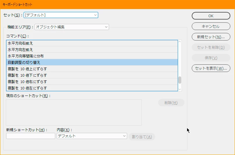 フレーム調整オプション「自動調整」適用にショートカットはあるか