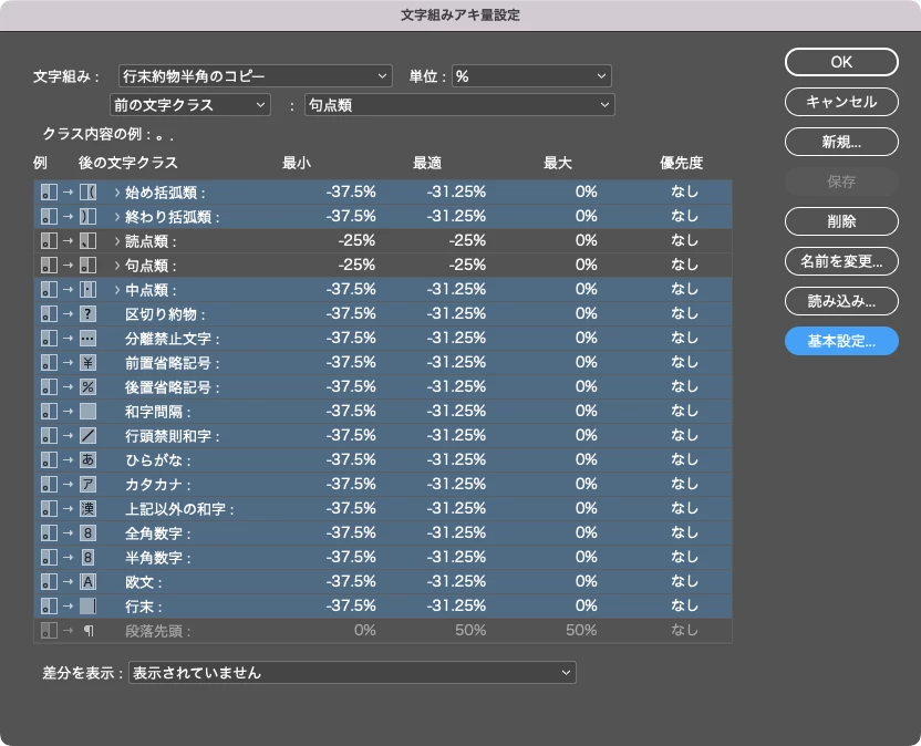文字組みアキ量設定のサンプルはこんな感じです