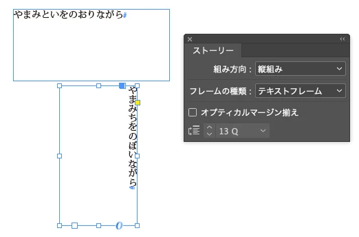 すでにあるテキストフレームの組み方向変更については前述のメニュー操作か、