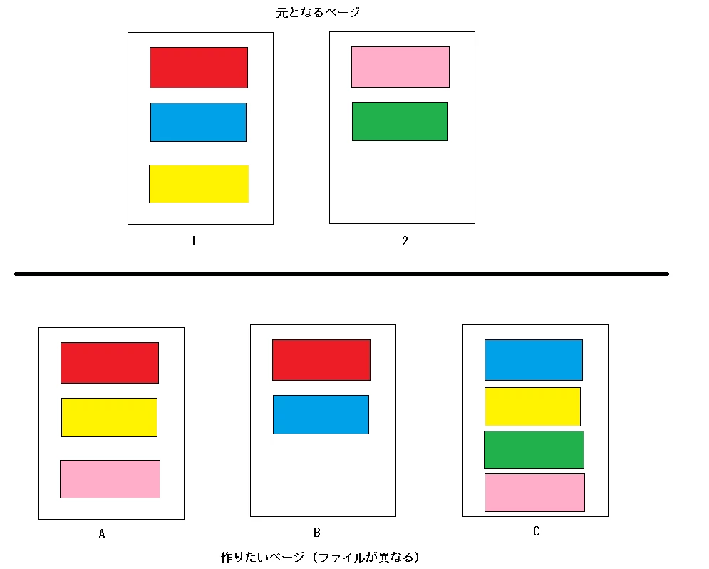 1.元となるページを作成し、そこから必要な表をリンクしてページを作成できるのか。(簡単ですが、下記にイメージ図を載せておきます。)
