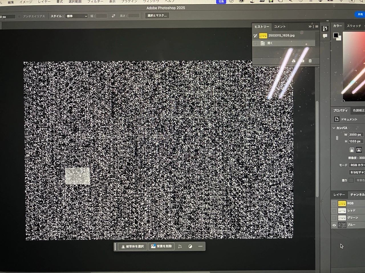Photoshopで確認したところ、特にBチャンネルが完全に破損している。