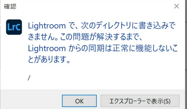 カタログ、もとのRAWデータともにDropboxに入れておりこのエラーメッセージのOKをクリックすれば動作自体は問題ありません。