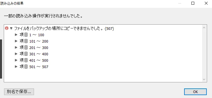 読み込みをした後に、下記のようなメッセージが時々出てきます。