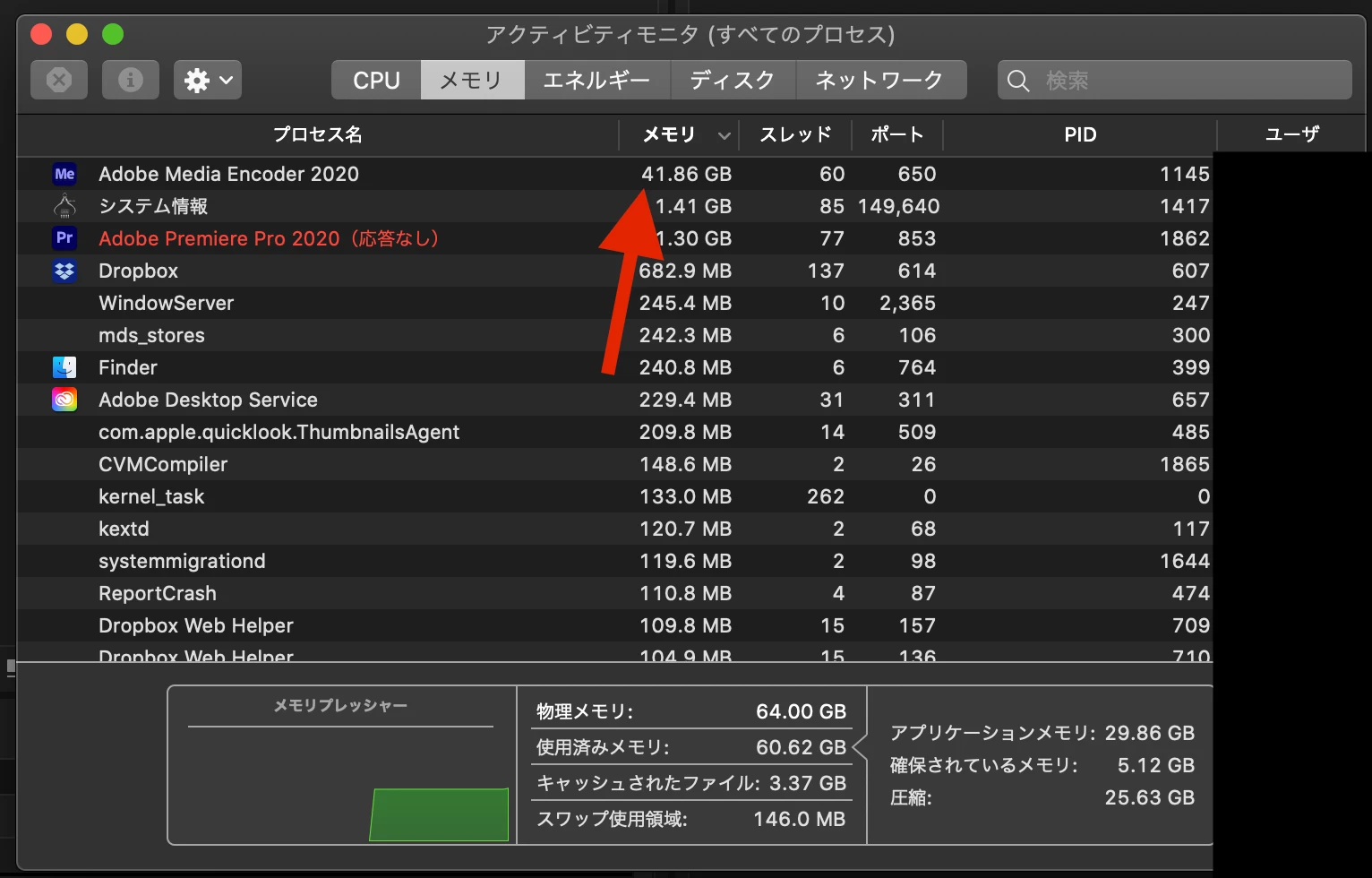投稿した写真の様に、メモリ使用量が異常な値を示す様になってしまいました。