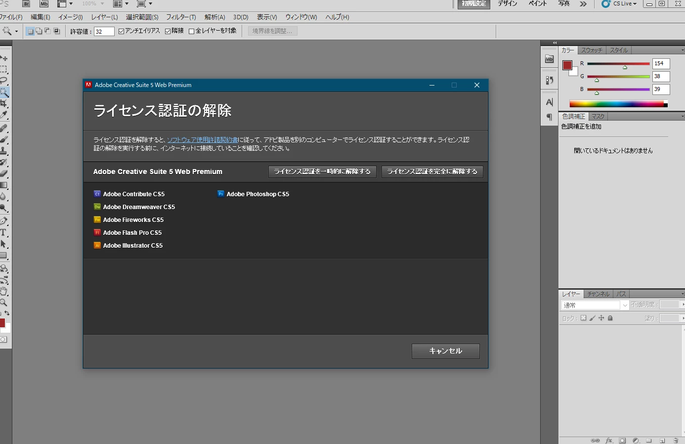 パソコンを入れ替えるためCS5 WEB PREMIUM(アップグレード版)のライセンス認証を解除しようとしています。