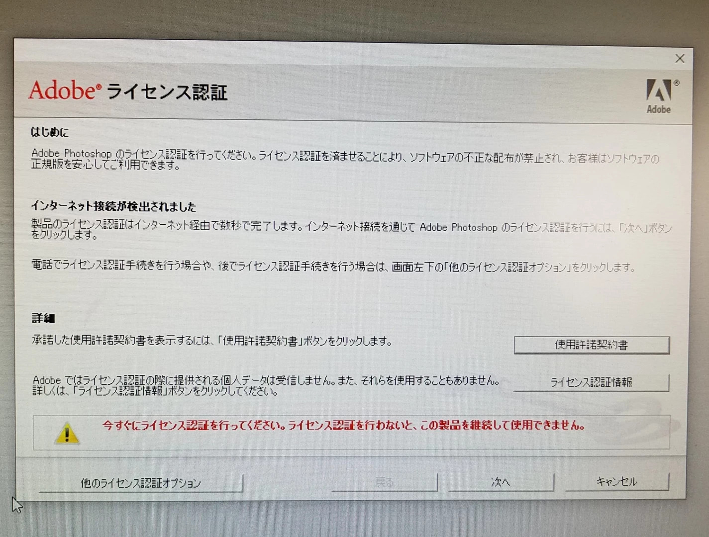 creative suite premium 日本語版中photoshopとillustratorがライセンス認証画面が出てきて使えなくなりました。