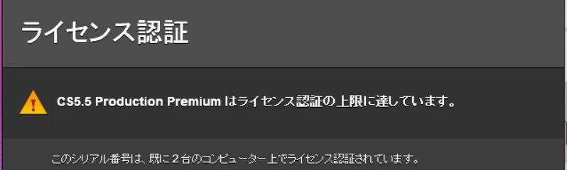古いバージョンですが、使おうとしたら「ライセンス認証の上限に達しています」と出て使えなくなっています。