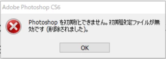 社内で使っている Photoshop cs6 が「Photoshopを初期化できません。初期設定ファイルが無効です(削除されました)。」というエラーメッセージと友に急に使えなくなりました。