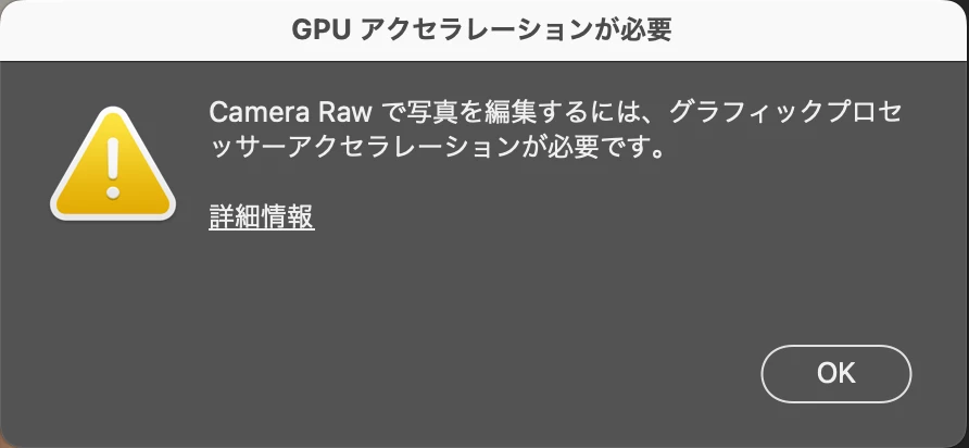 Camera Rawが突然使えなくなりました(画像あり)GPUアクセラーション