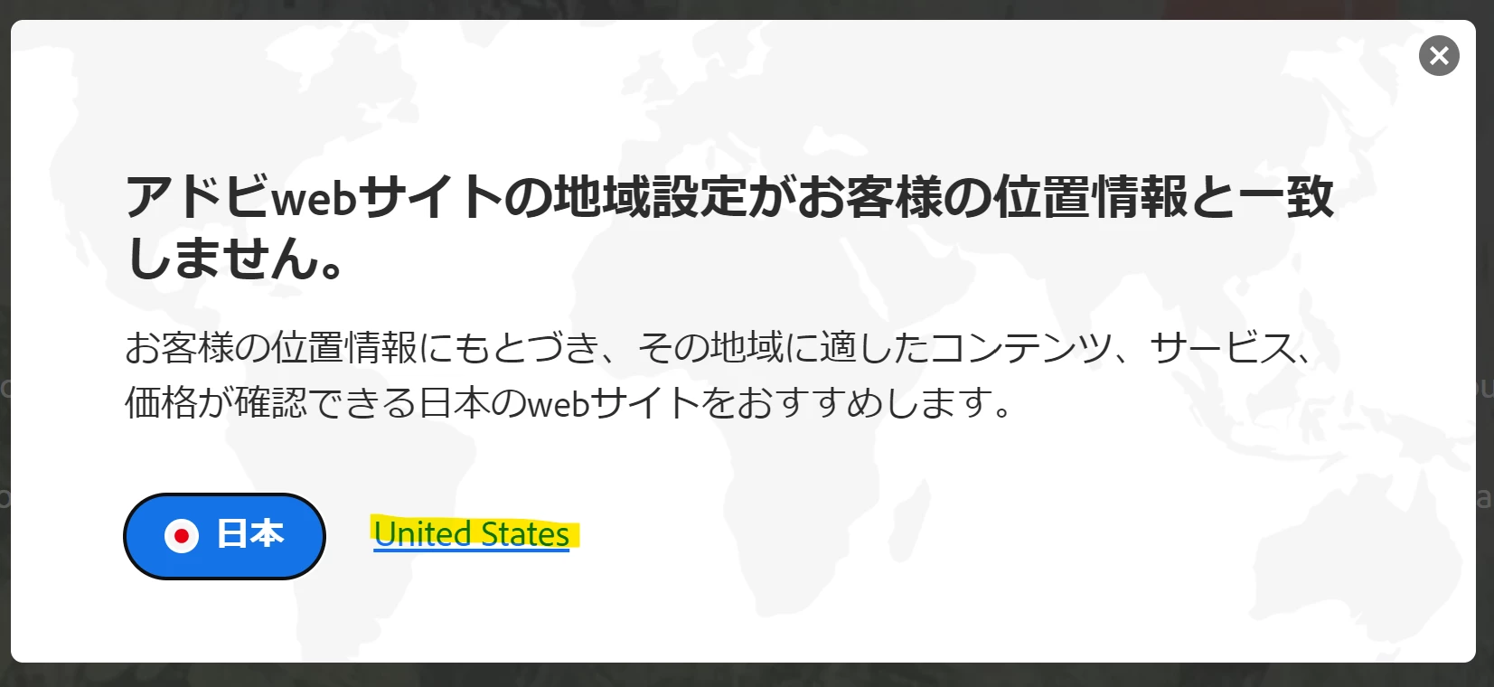 こちら位置情報のポップアップ表示がされた場合、私側でも "日本" を選択すると、ダウンロード画面につながりませんでしたが、"United States" を選択すると、ダウンロードできたので、そちらお試しいただいてもよろしいでしょうか。