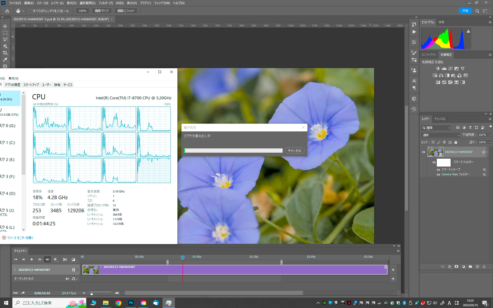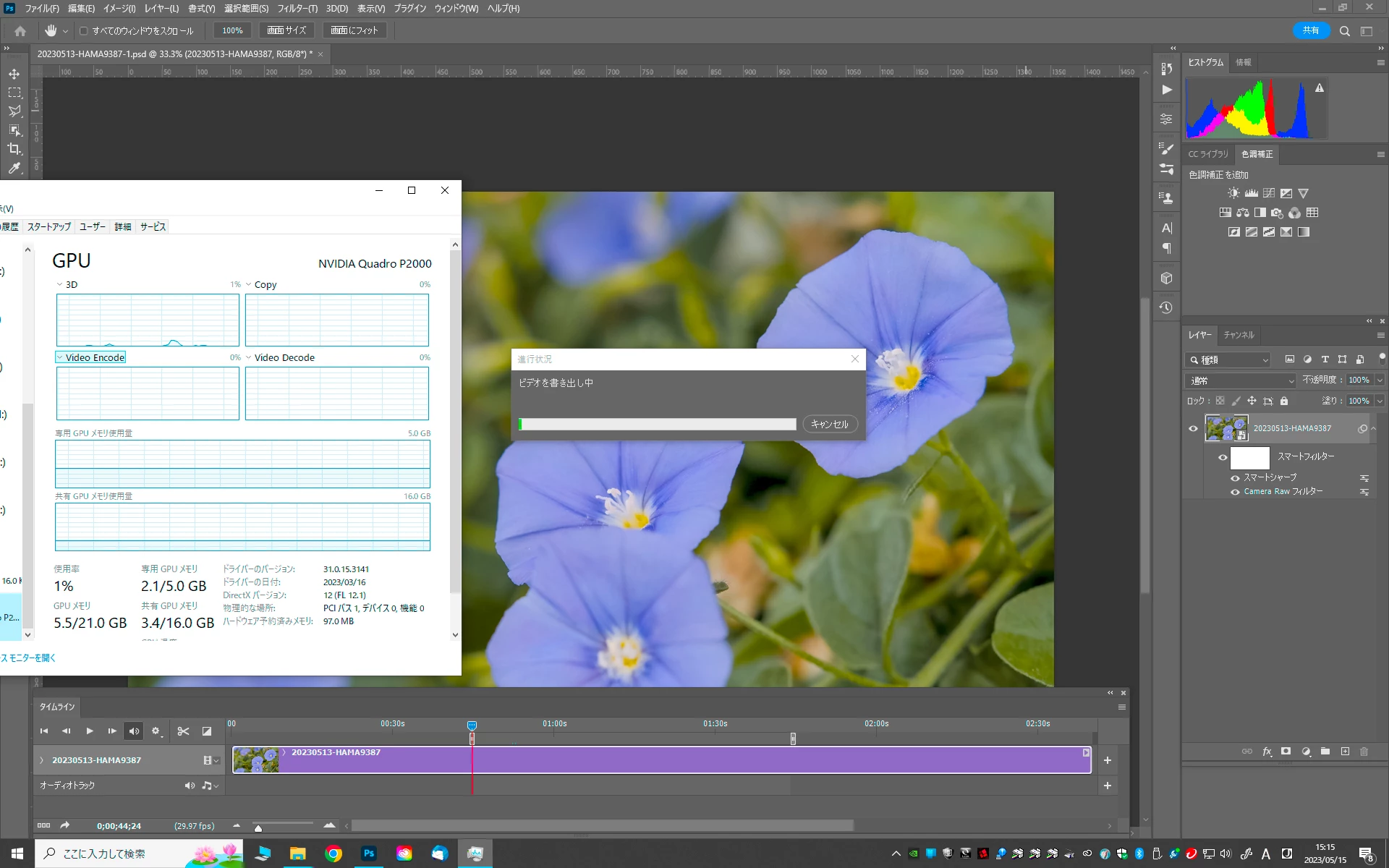 Photoshop2023でビデオのレンダリングを行うと、5月14日から「ビデオの書き出し中」でフリーズするようになりました。