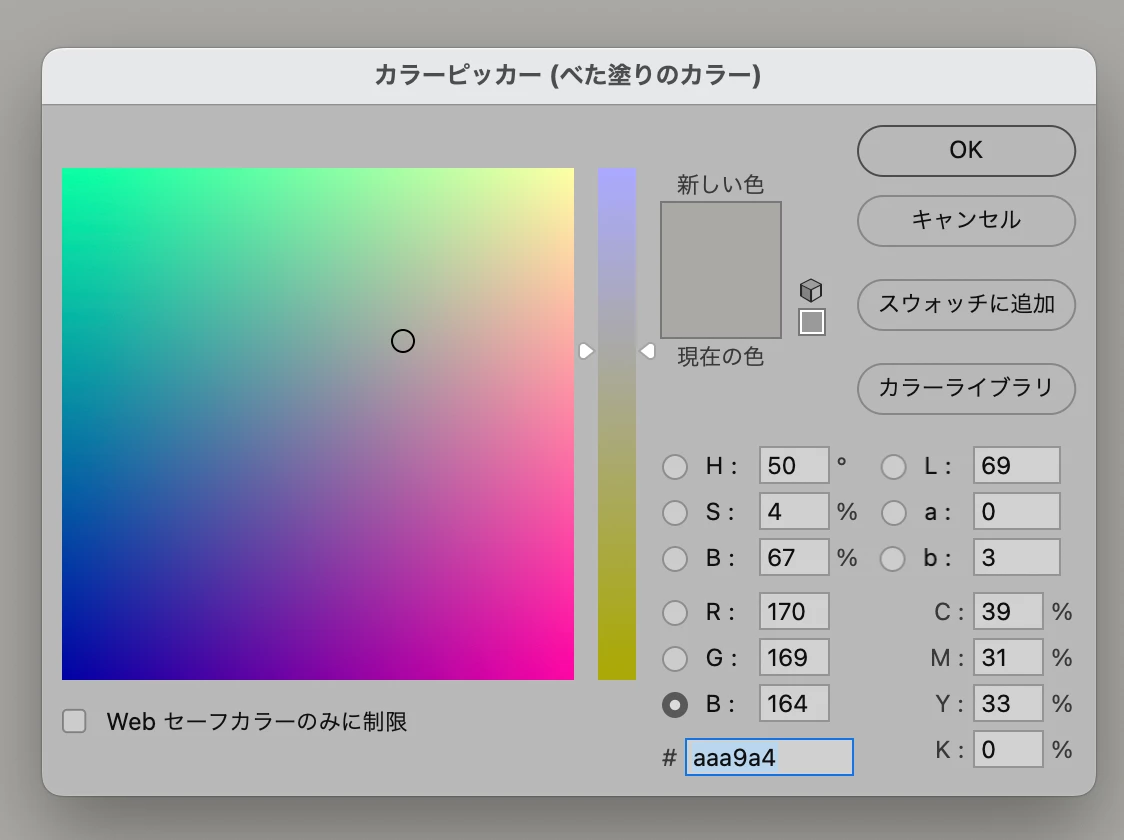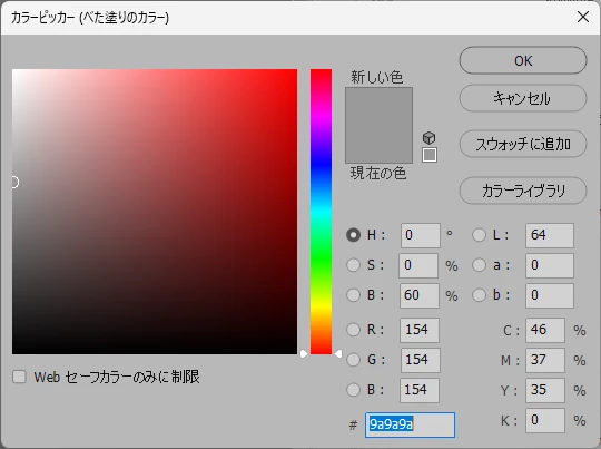 これがいままでのカラーピッカーで黒とか白とか選択しやすい