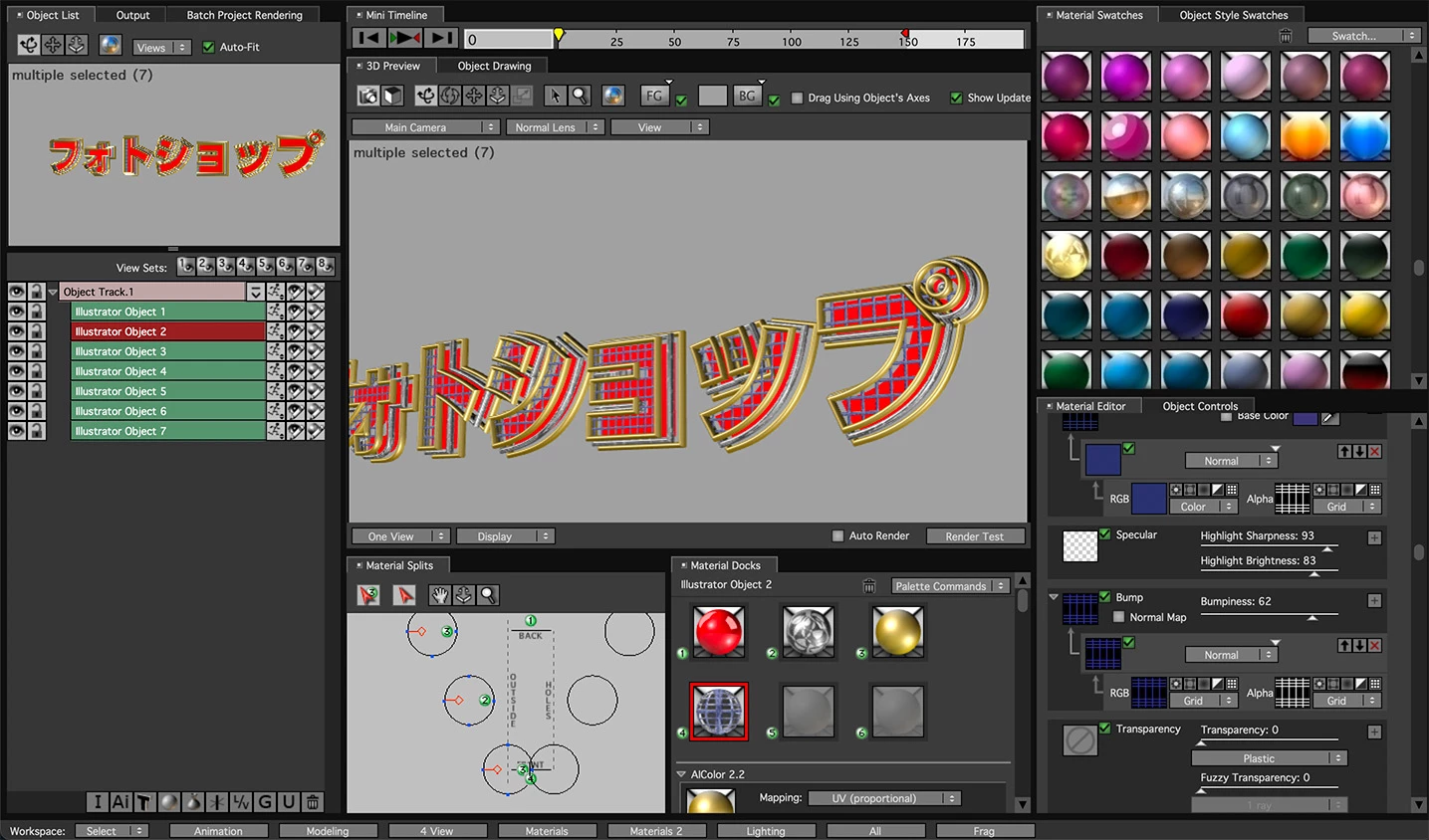 手取り早いのはAfter EffectsのElements3Dを使うことかもしれませんが、パチンコ広告みたいな3Dテロップを作りたいわけではなくて、Photoshopでしかできないようなデザインのテロップを3D化したいです。(何枚も作ることを考えるとPhotoshopだけで完結したい)