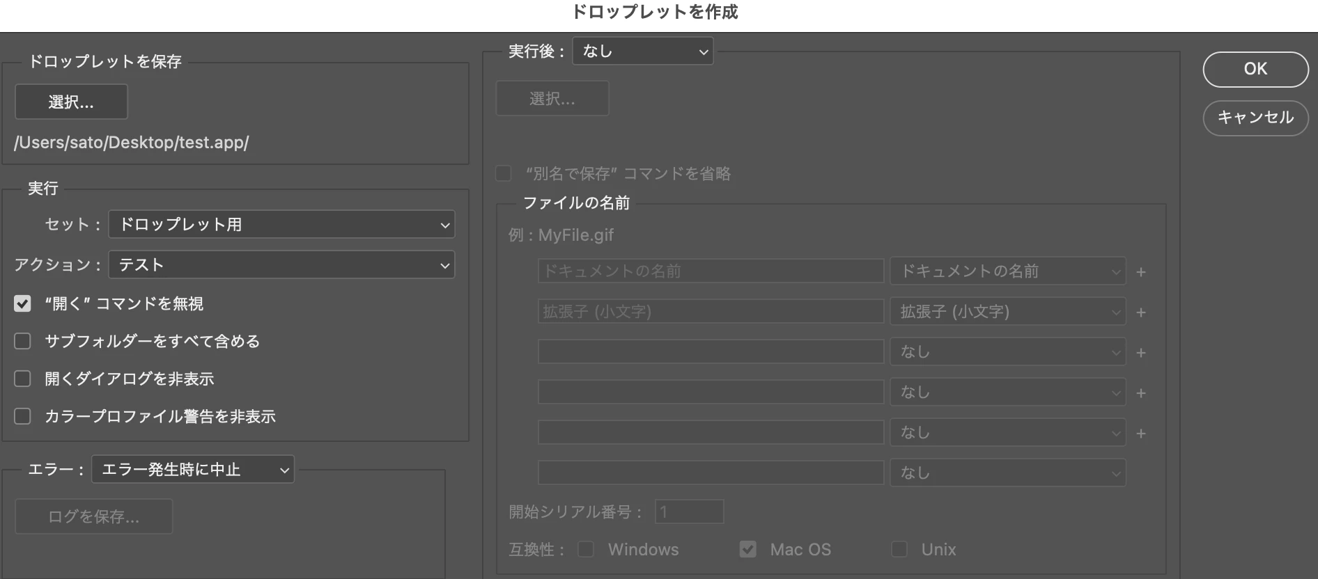Photoshopのドロップレットを使用していたのですが、突然何も実行されなくなりました。