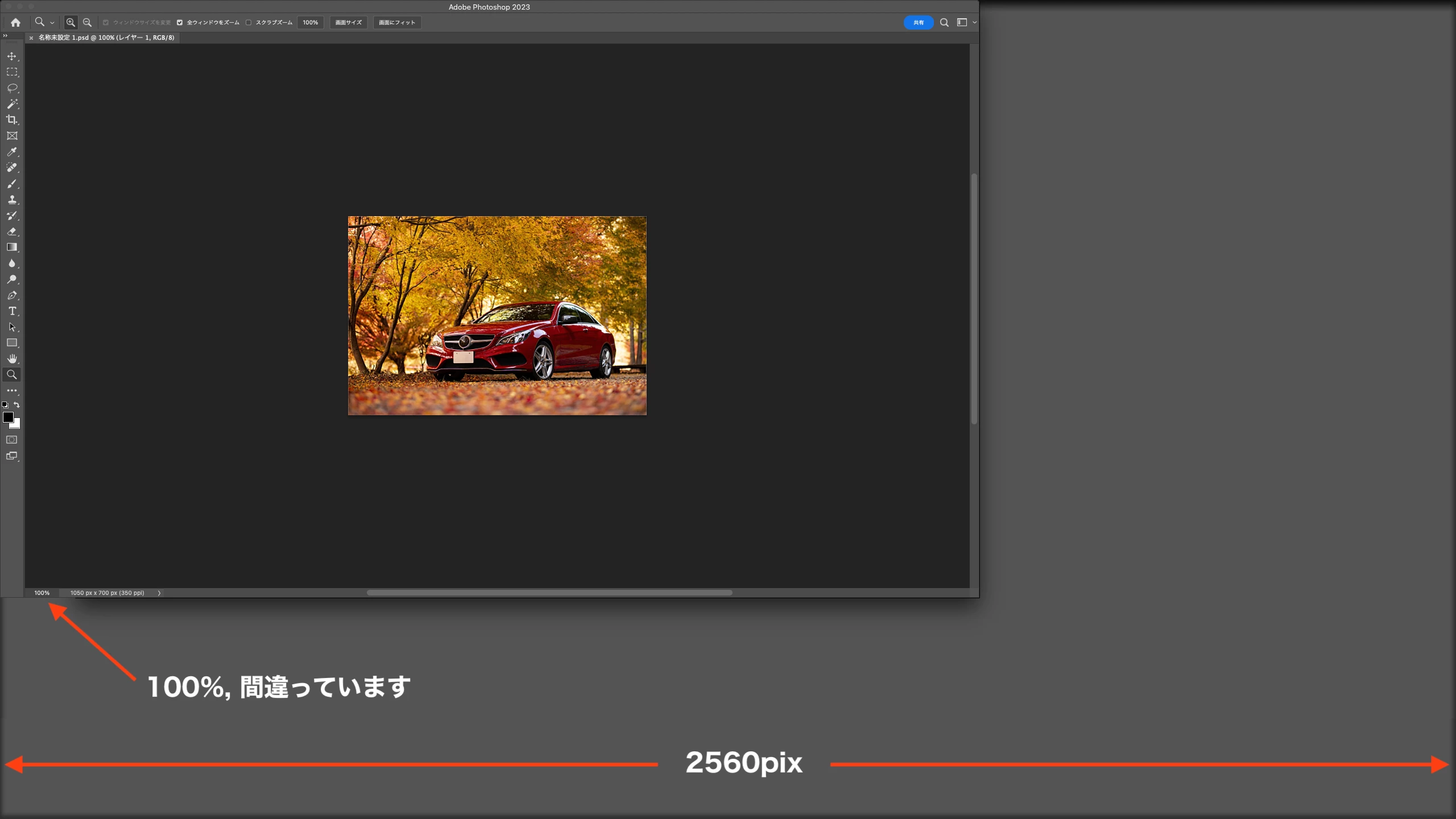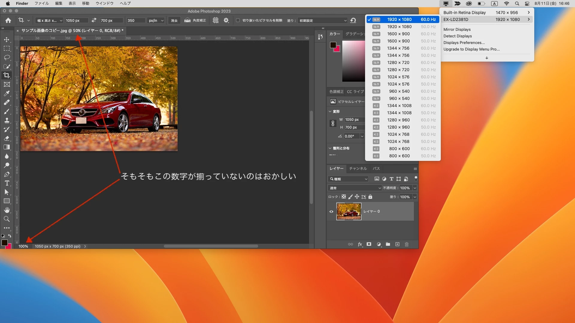 例として MacBook Air と 2560x1440 のディスプレイを併用(メルセデスの画像は横1050pixです。)